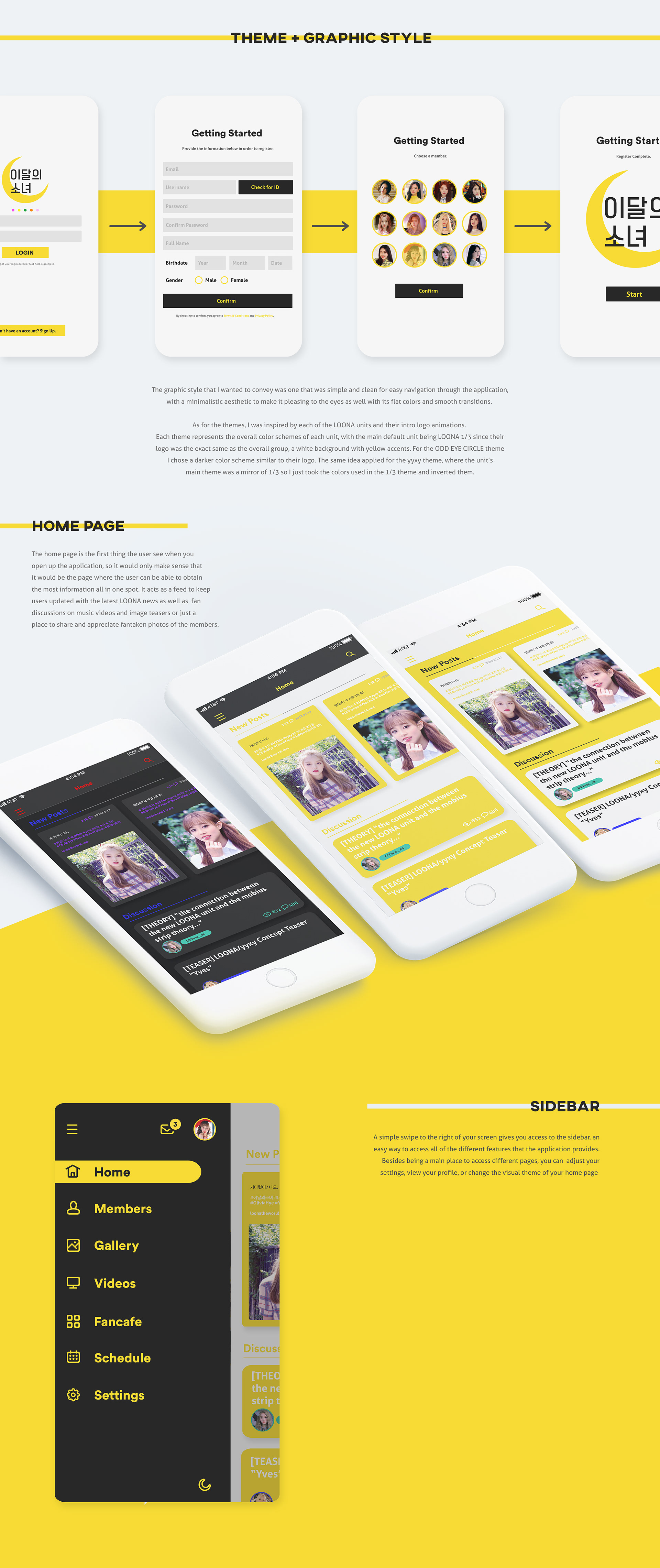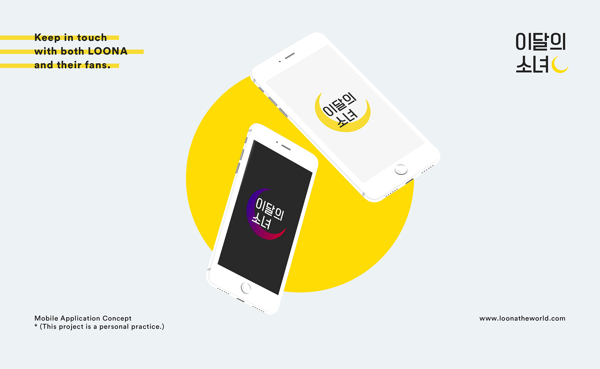 A conceptual design of an application for the upcoming k-pop girl group LOONA. This is nothing and was just done as a personal practice.